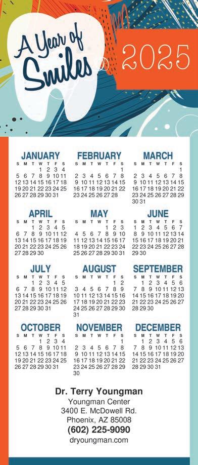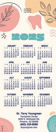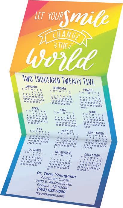 • Low-cost, high-ROI promotional product; calendars are kept year round and keep your practice name visible 365 days a year