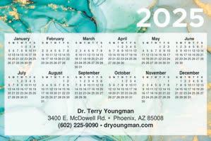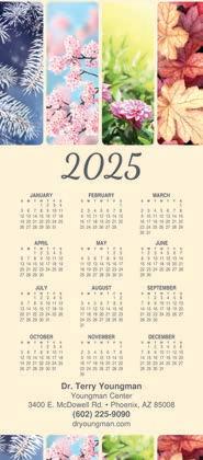 Back options include choice of 2025 Calendar or ample space for Free personalized message, practice logo and practice information