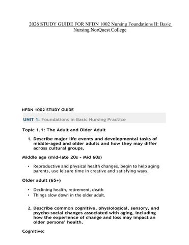 2026 STUDY GUIDE FOR NFDN 1002 Nursing Foundations II: Basic Nursing NorQuest College