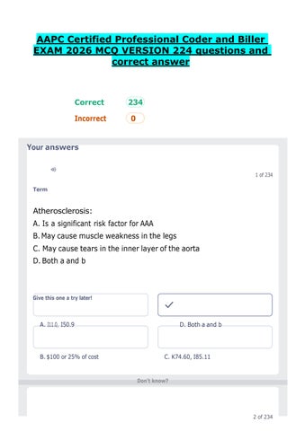 AAPC Certified Professional Coder and Biller EXAM 2026 MCQ VERSION 224 questions and correct answer