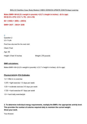 BIOL121 Nutrition Case Study Module 3 NEW VERSION UPDATE 2026 Portage Learning