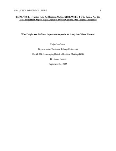BMAL 720: Leveraging Data for Decision Making (B04) WEEK 4 Why People Are the Most Important Aspect in an Analytics-Driven Culture 2026 Liberty University