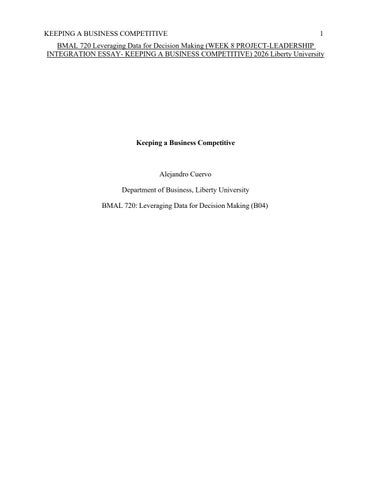 BMAL 720 Leveraging Data for Decision Making (WEEK 8 PROJECT-LEADERSHIP INTEGRATION ESSAY- KEEPING A BUSINESS COMPETITIVE) 2026 Liberty University