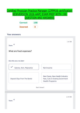Certified Physician Practice Manager (CPPM)® certification NEWVERSION 2026 AAPC EXAM PREP WITH 198 QUESTION AND ANSWERS Correct Incorrect