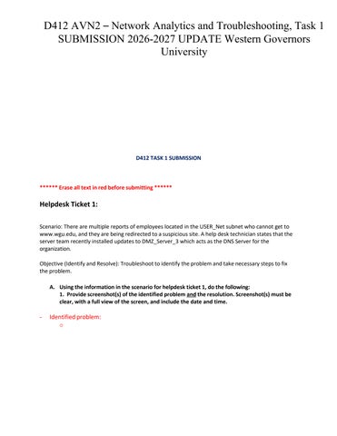 D412 AVN2 – Network Analytics and Troubleshooting, Task 1 SUBMISSION 2026-2027 UPDATE Western Governors University