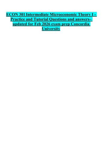 ECON 301 Intermediate Microeconomic Theory I Practice and Tutorial Questions and answers– updated for Feb 2026 exam prep Concordia University