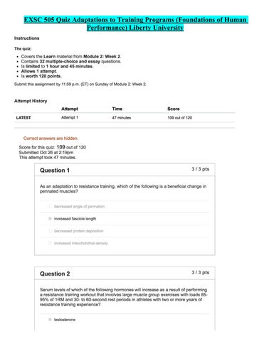 EXSC 505 Quiz Adaptations to Training Programs (Foundations of Human Performance) Liberty University