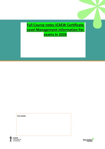 Full Course notes ICAEW Certificate Level Management Information For exams in 2026