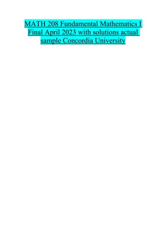MATH 208 Fundamental Mathematics I Final April 2023 with solutions actual sample Concordia University