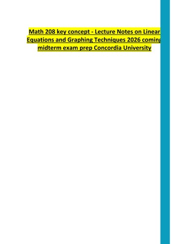Math 208 key concept - Lecture Notes on Linear Equations and Graphing Techniques 2026 coming midterm exam prep Concordia University
