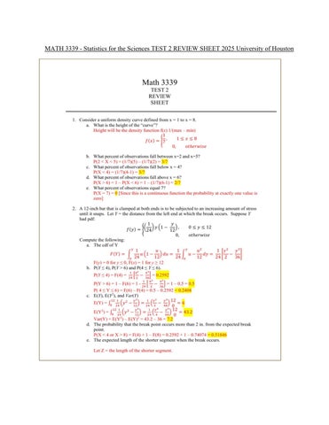 MATH 3339 - Statistics for the Sciences TEST 2 REVIEW SHEET 2025 University of Houston
