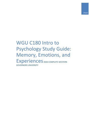 WGU C180 Intro to Psychology Study Guide: Memory, Emotions, and Experiences 2026 COMPLETE WESTERN