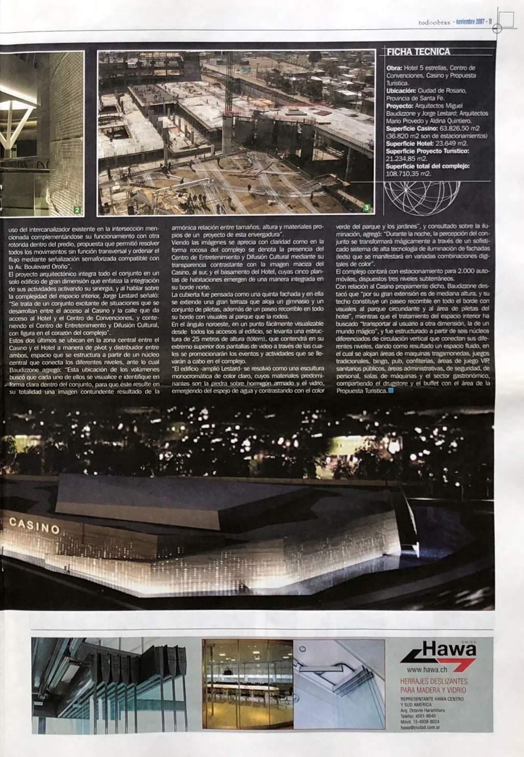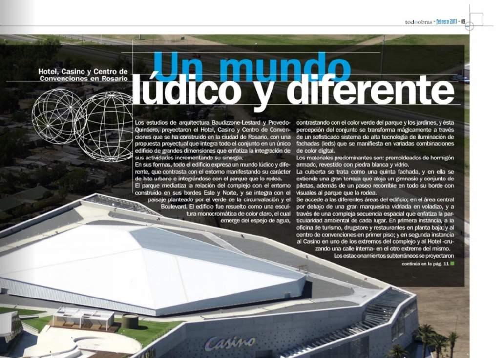 As the result of an international tender of bi ds called by Santa Fe Lottery, the architecture firm of Miguel Baudizzone and Jorge Lestard (together with that of their colleagues Mario Provedo and Aldina Quintiero) contributed to the project with their professionalism to the already formed group -as explained to Todo Obras. “Our aim is to create one of the most important Entertainment Centers in Argentina.”