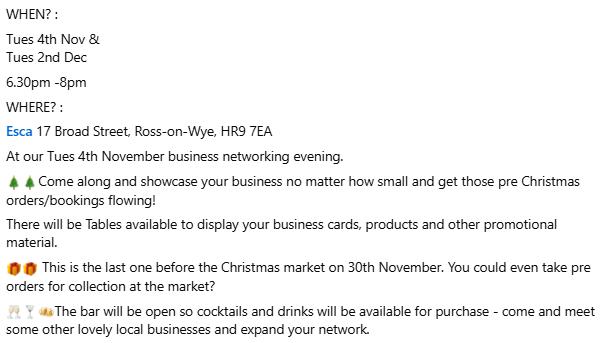 I have included many local businesses in the directory, but please contact me if you are not listed and are in the Wye Valley or immediate catchment area, and I will have you added in no -time, you only pay if you choose to take advertising space in addition to your free listing. Enjoy reading and get something in the diary, you deserve it!