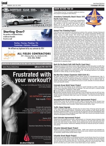Citywide Sidewalk Repair Project Repairs to various sidewalk locations Citywide. Traffic lane closures and sidewalk closures should be expected throughout the construction zones. Detours may be announced as necessary, please follow posted detour signs. 1315 3rd Street Promenade • 4th floor (above food court) • Santa Monica 310.394.1300 • www.burnfit.com *one year rate