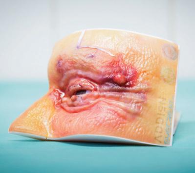 Realistic multi-layer anatomical eyelid models replacing cadaver training with scalable surgical simulation.