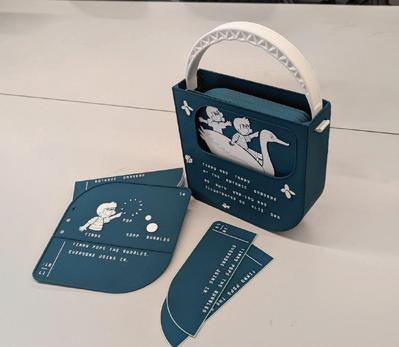 3D printed Braille storybook with interchangeable plates enabling low-cost, scalable production of accessible literacy tools for visually impaired children.