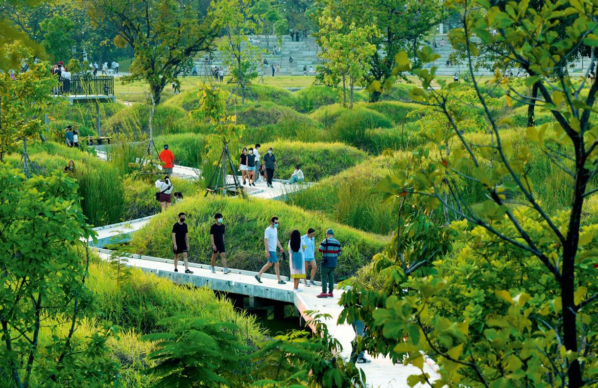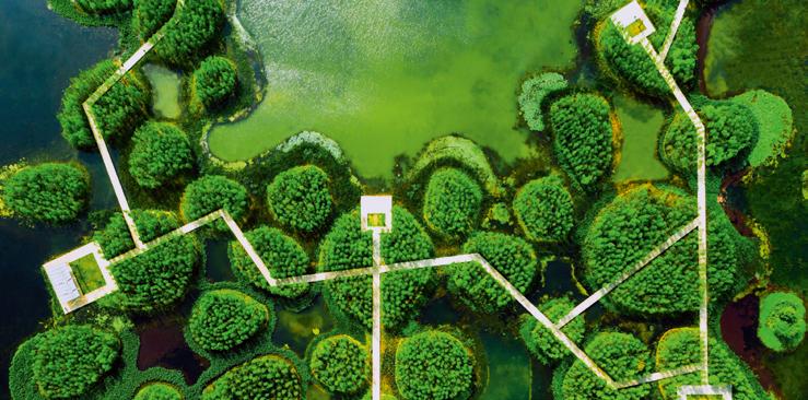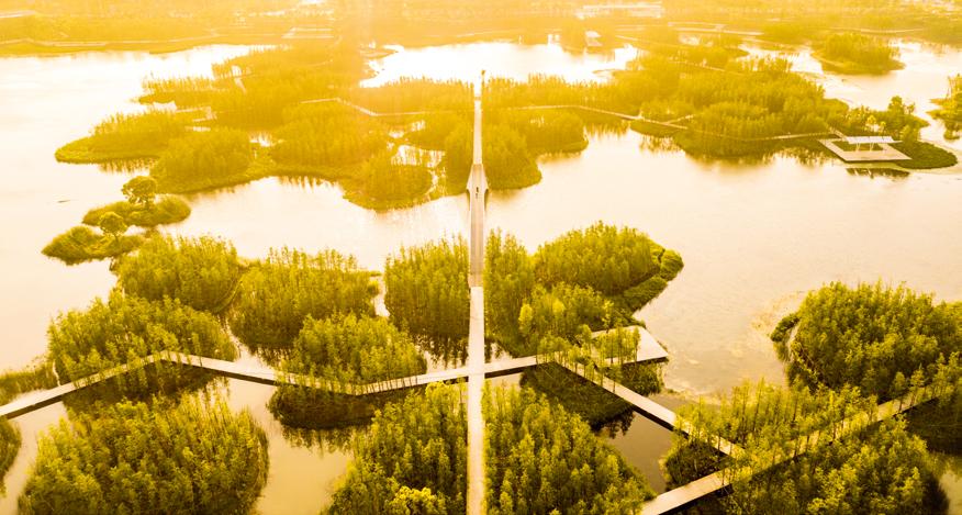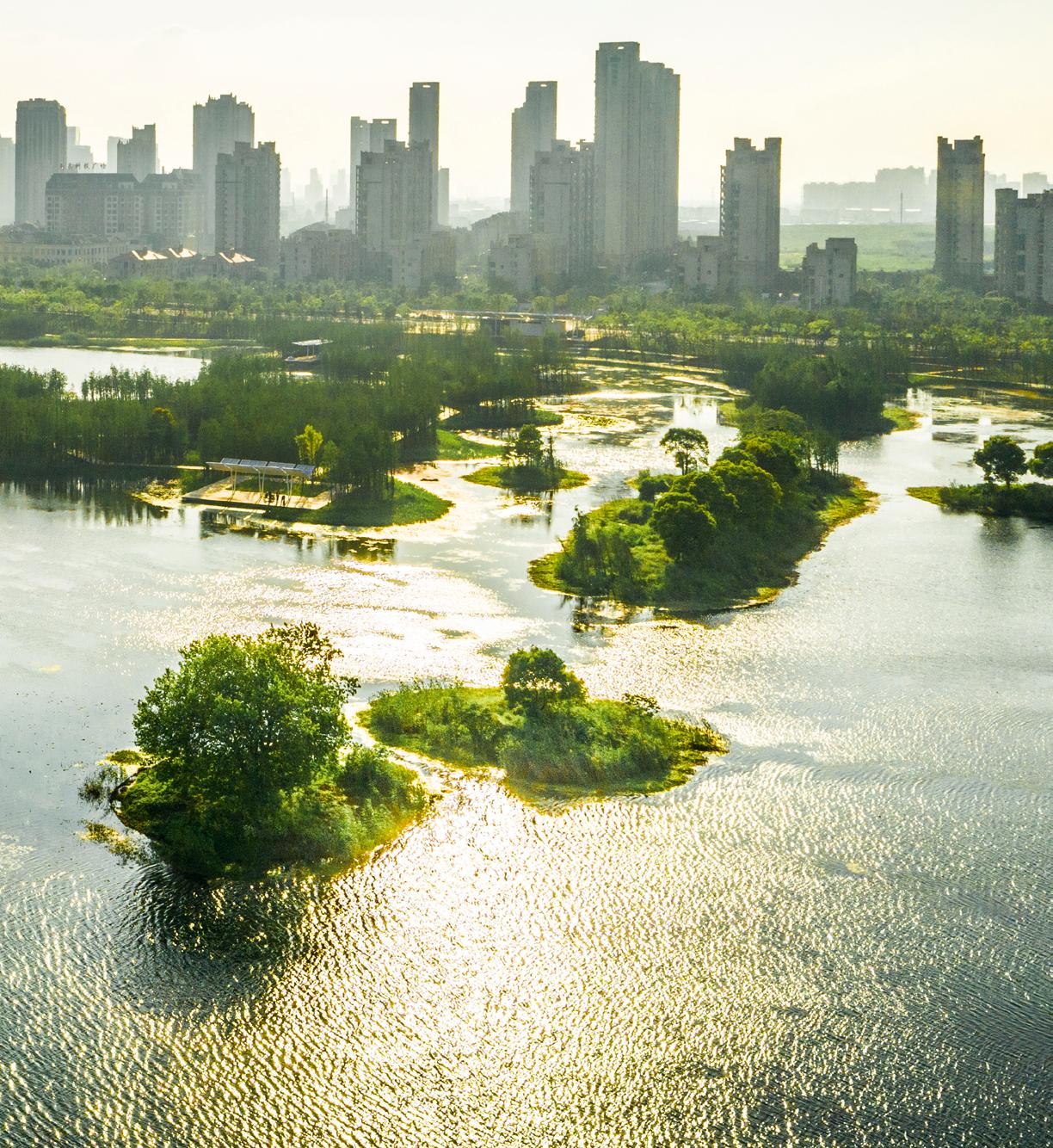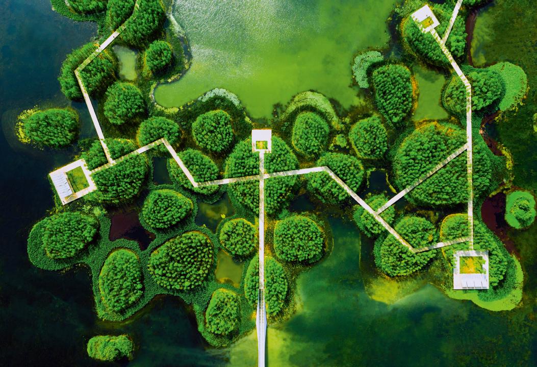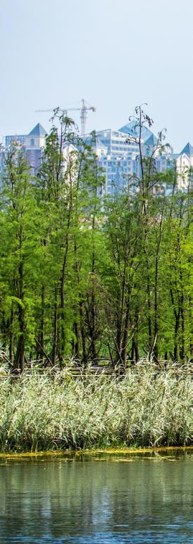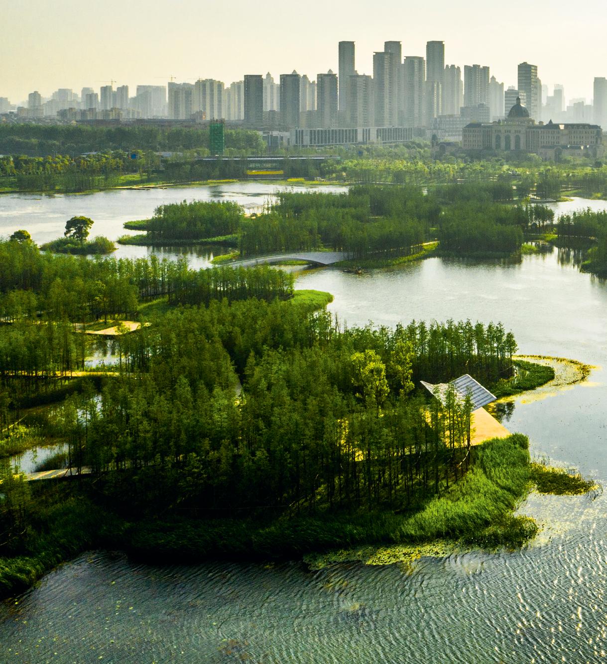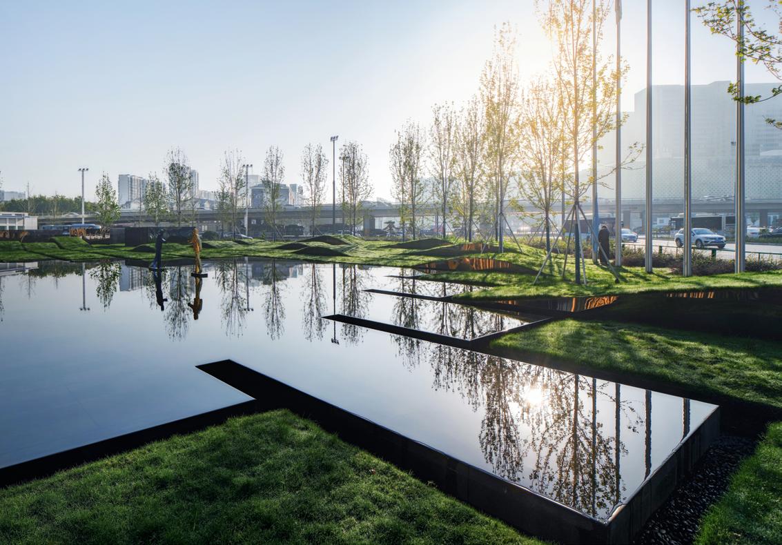 Atsižvelgdami į ženklius vandens lygio svyravimus, architektai parinko ir atitinkamą augmeniją. Jie išanalizavo Jangdzės upės baseine esančio supelkėjusio Pojanghu ežero –migruojančių paukščių buveinės ir nacionalinio gamtos rezervato –