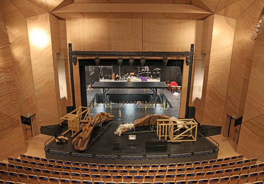 geresnė nei šiuolaikinio namų televizoriaus. Šis ekranas apgaubia žiūrovų auditoriją ir pribloškia nepaprastais 4D reginiais. Vaizdu kuriamą įspūdį sustiprina iš daugiau kaip 167 tūkst. garsiakalbių sudaryta vokiečių gamintojos „Holoplot“ drauge su „Sphere Studios“ sukurta pažangiausia pasaulyje koncertinio lygio garso sistema „Sphere Immersive Sound“. Kartu ji yra ir didžiausia pasaulyje visiškai integruota garso sistema, užtikrinanti kontroliuojamą ir visada kuo švariausią koncertinio lygio garsą 20 tūkst. auditorijai: kiekvienas žiūrovas, kad ir kur jis sėdėtų – pirmoje ar paskutinėje eilėje, – gali pasinerti į akustinius potyrius netrikdomas šiuolaikiniams pasirodymams būdingo triukšmo. Be ausinių mėgautis švariu garsu, kokį įprastame šiuolaikiniame pasaulyje įmanoma girdėti tik per aukščiausios kokybės ausines. Dar daugiau nepaprastų potyrių suteikia 10 tūkst. sėdynių integruota jutiklinė (haptinė) infragarso sistema: ji ne tik sustiprina vibracijas, bet ir atkuria vėjo, temperatūros pokyčių ir kvapų pojūčius.