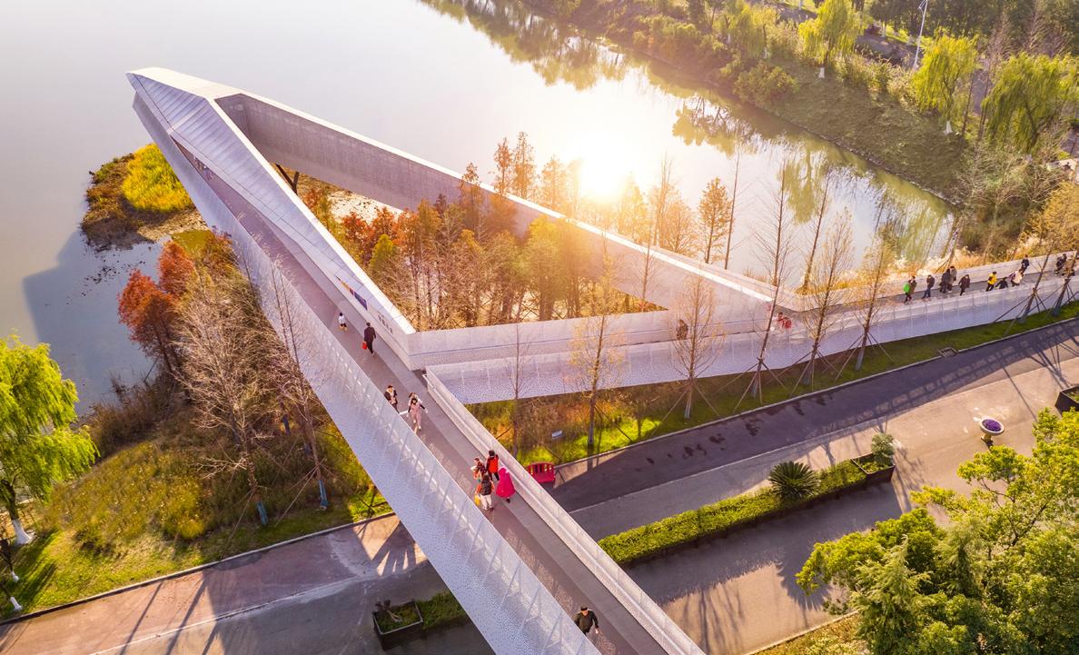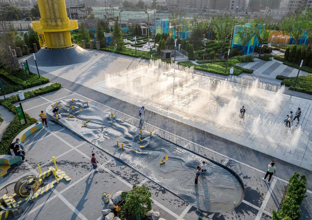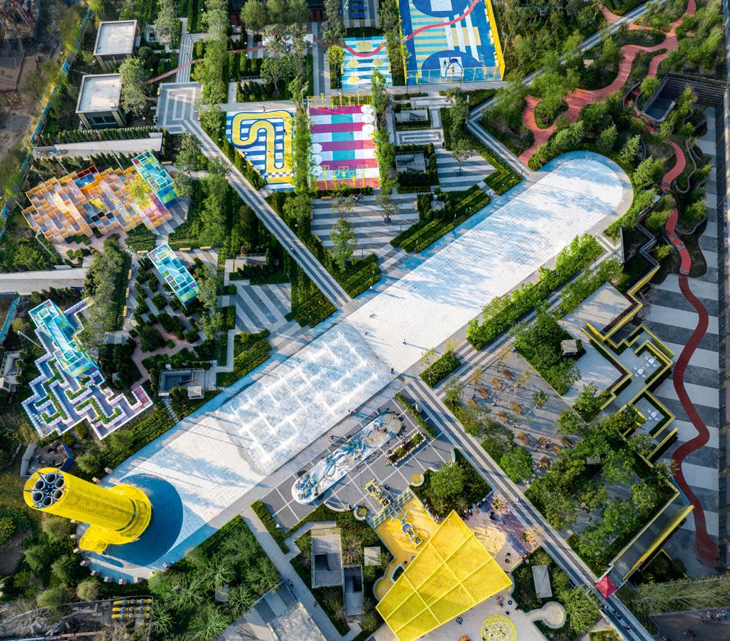 Ketvirtame pagal gyventojų skaičių (apie 16 mln. gyventojų) ir antrame pagal plotą Kinijos mieste Tiandzine, kuriame plėtojamos įvairios pramonės šakos ir yra vienas intensyviausios veiklos uostų šalyje, architektai suprojektavo veiksmo kupiną sporto parką. Jo struktūros pagrindas – kadaise čia buvusio
