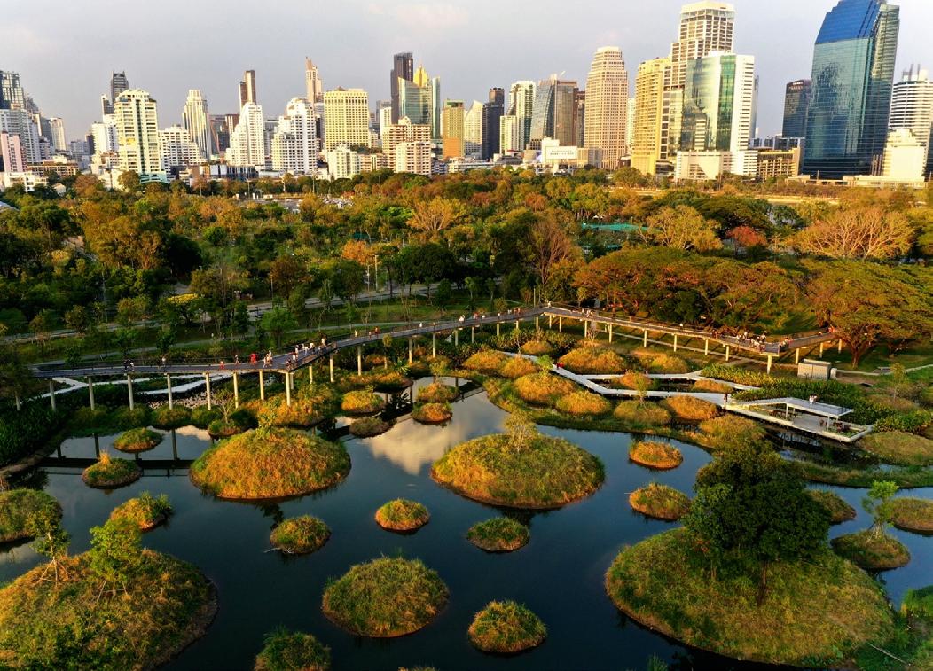 suprojektavo dirbtinį ežerą su daugybe salelių, sukurtų iš iškastų žemių, sumaišytų su vietoje slūgsojusiais anglies pelenais. Įrengus terasines šlapynes, ežeras pritaikytas musoninių liūčių sukeliamiems potvyniams atlaikyti bei vandens lygiui reguliuoti, maža to, jis ne tik gali sugerti net milijono kubinių