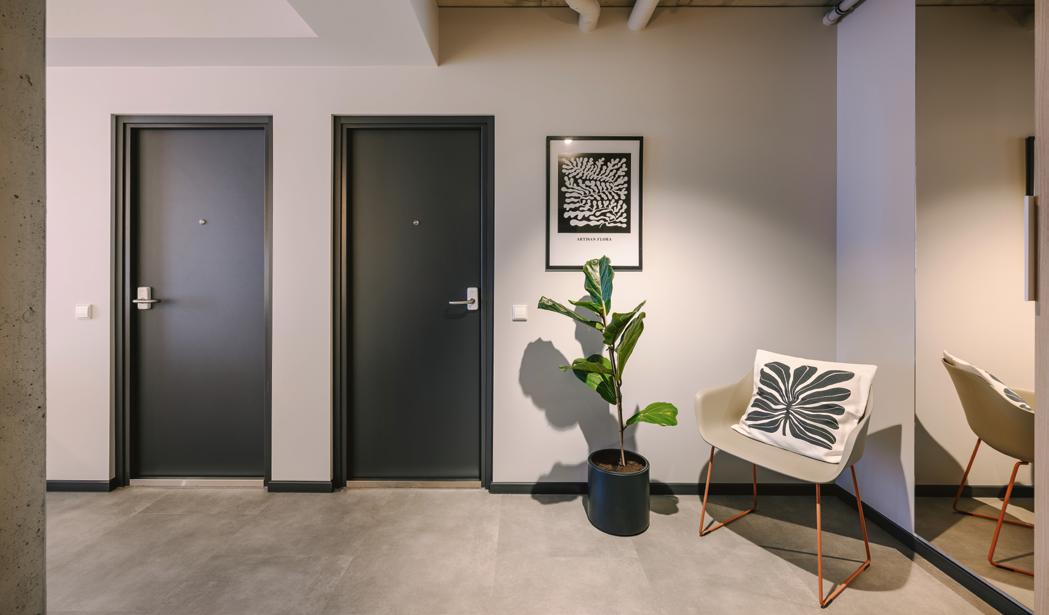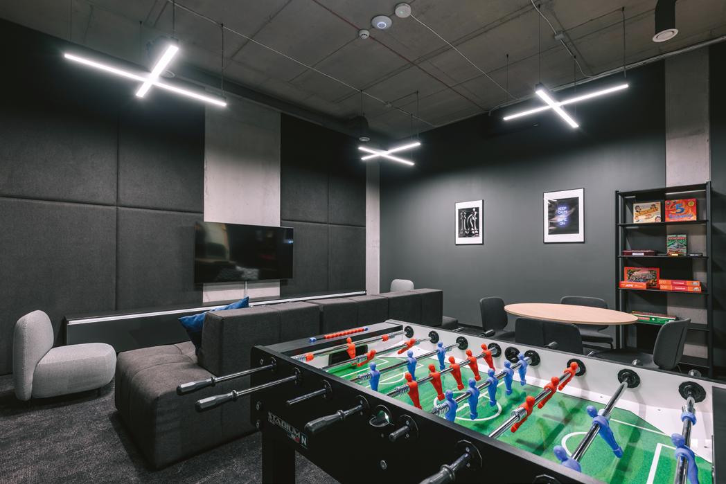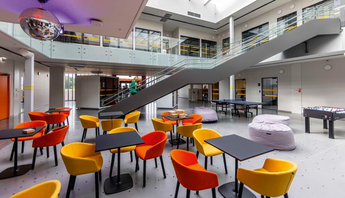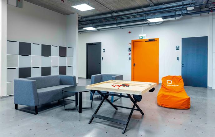 Sporto komplekso interjero architektės ir dizainerės Jurgitos Dulinskienės pasiūlymu sporto ir poilsio erdvės sujungtos vieningais dizaino sprendiniais.