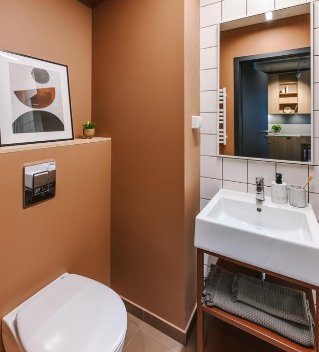 Norimą įspūdį dar labiau sustiprina prieblandos apšvietimas, nišinės zonos poilsiui ir visa interjero spalvinė gama – prislopinti tamsesni atspalviai, išryškinantys reikiamas detales.