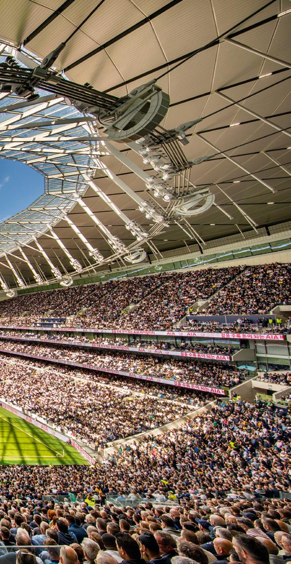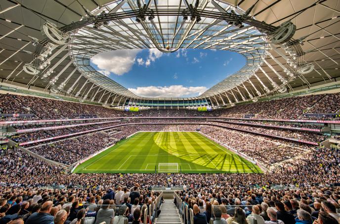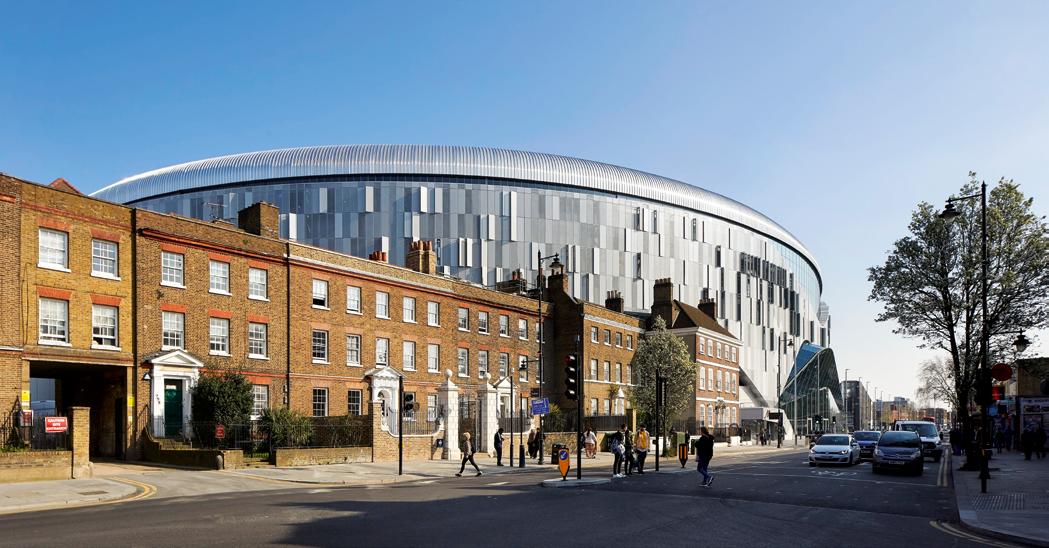 2019 m. vietoj šimtamečio „White Hart Lane“ šiauriniame Londono rajone Totename (Tottenham) atidarytame stadione telpa beveik 63 tūkst. žiūrovų, tačiau „Populous“, pritaikiusi naujovišką dizainą, jame sugebėjo sukurti intymią atmosferą ir, suprojektavusi tribūnas didžiausiu Jungtinėje Karalystėje leidžiamu –35 laipsnių kampu, maksimaliai priartino gerbėjus prie veiksmo aikštėje. Čia taip pat įrengta didžiausia šalyje vieno aukšto tribūna – joje yra net 17 500 vietų, 5000 iš jų stovimos. Tribūna suprojektuota taip, kad sukurtų galingą „garso sieną“ ir sustiprintų minios skleidžiamą energiją. Siekdama optimizuoti stadiono akustiką ir atitinkamai sureguliuoti aidėjimo laiką, „Populous“ bendradarbiavo su muzikos grupės U2 garso inžinieriais. Totenamo stadionas su visiškai ištraukiama natūralios velėnos aikšte taip pat yra pirmoji specialiai įrengta amerikietiškojo futbolo erdvė už JAV ribų.