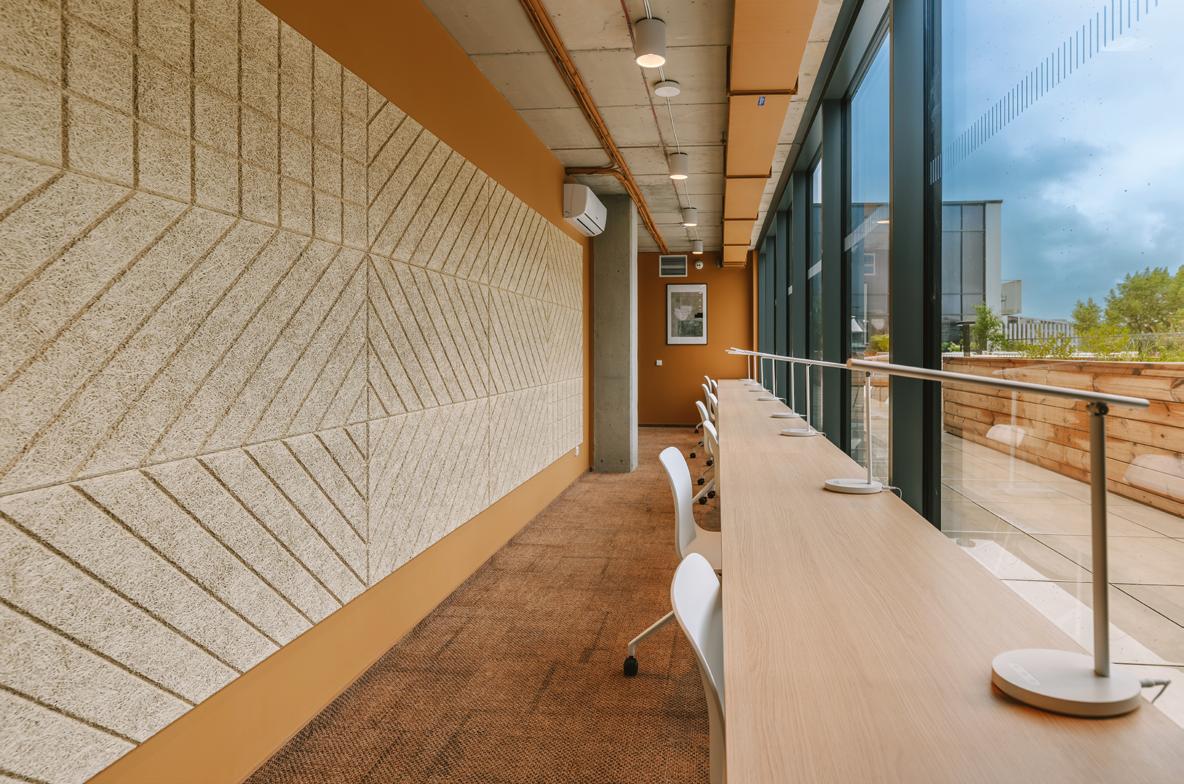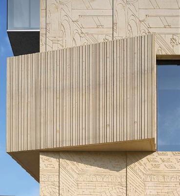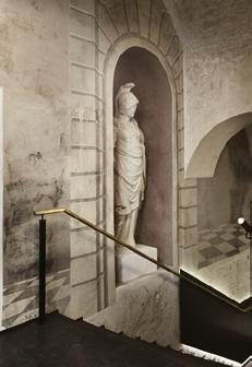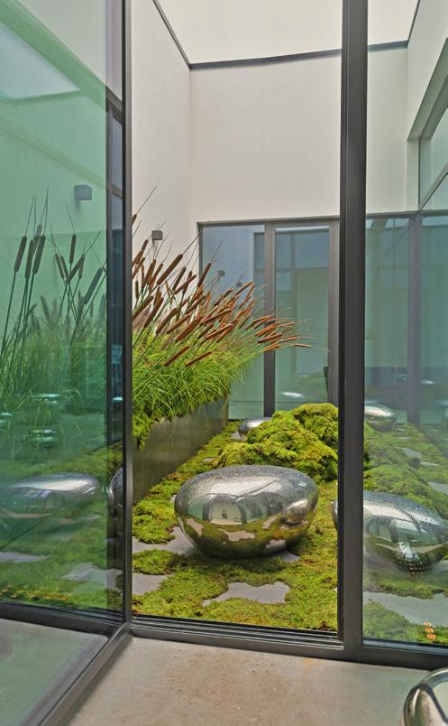 Netikėtumo efektas interjere kuriamas statybų aikštelėje aptiktais, iškastais ir į vidų atgabentais rieduliais, kai kurie iš jų yra per pusantro metro skersmens ir sveria daugiau kaip penkias tonas. Vienas iš tokių akmenų panaudotas kaip registratūros stalo elementas.