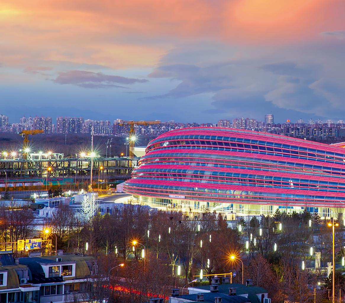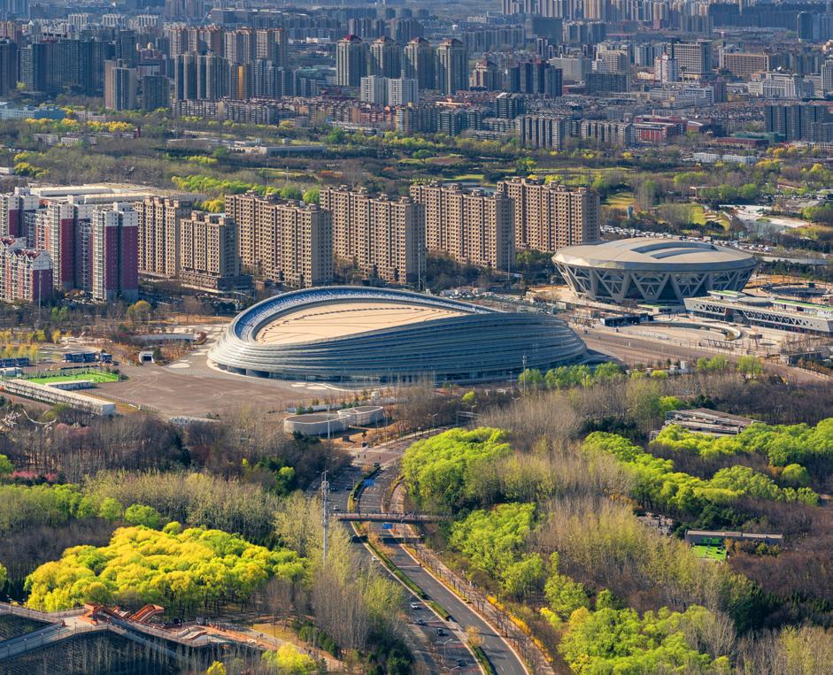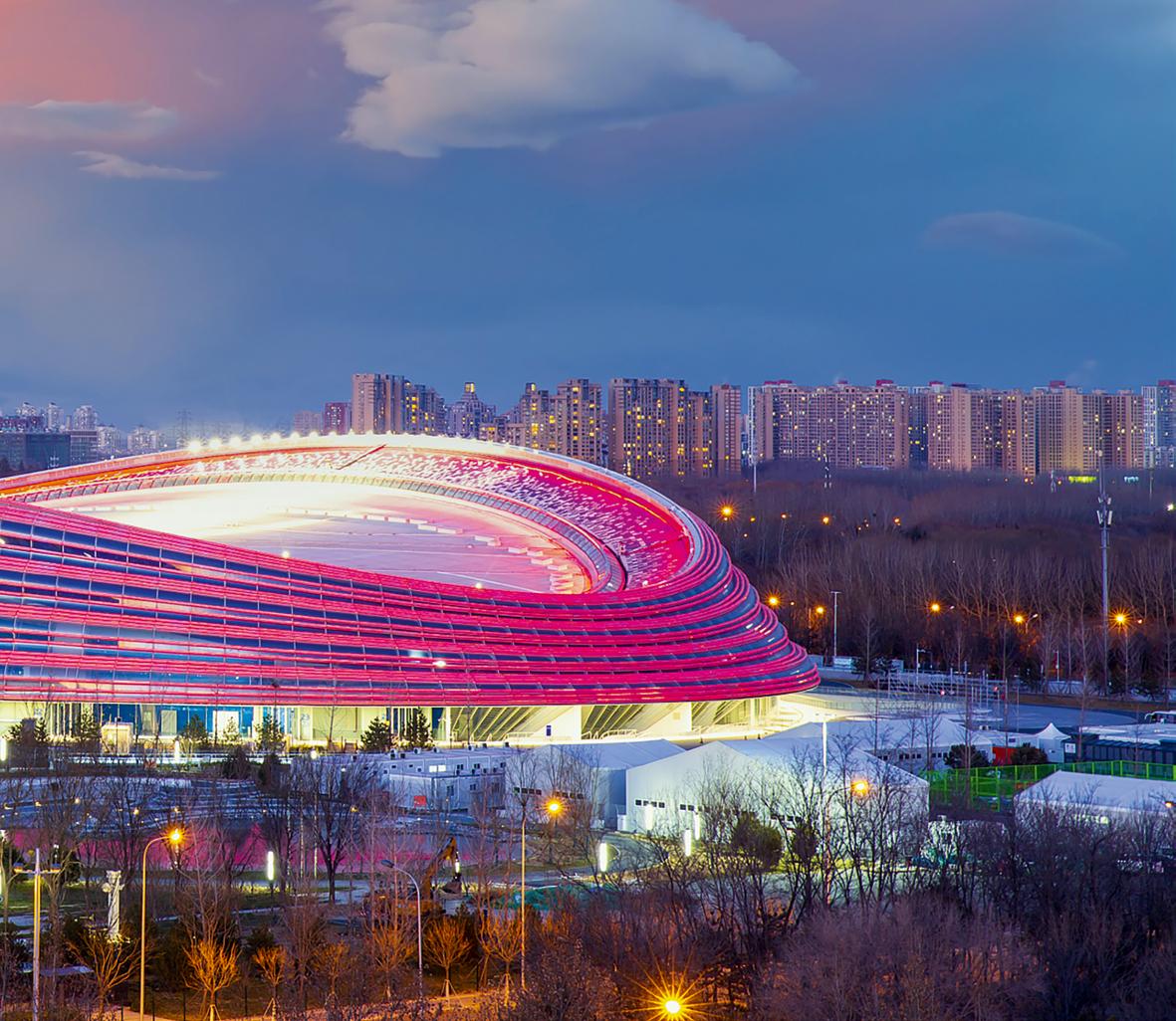 Sužinojęs, kad taps 2022 m. žiemos olimpinių žaidynių šeimininku, Pekinas nusprendė statyti naują renginio simbolį – greitojo čiuožimo varžybų areną. Pasaulinį projekto konkursą, kuriame dalyvavo net 66 pasaulinio lygio architektų bendrovės, laimėjo „Populous“, pasiūliusi Nacionalinio greitojo čiuožimo ovalo (angl. National Speed Skating Oval, NSSO), ne mažiau žinomo kaip „Ice Ribbon“ (angl. „ledo kaspinas“), projektą. Taip įmonės architektai, vos per 12 savaičių parengę konkursinį pasiūlymą, tapo jau dvyliktų olimpinių žaidynių architektūros projekto autoriais. NSSO, didžiausia greitojo čiuožimo arena Azijoje, iškilusi greta didingo plieninių konstrukcijų nacionalinio olimpinio stadiono, praminto „Paukščių lizdu“ (angl. Bird’s Nest), ir dinamiškos membraninės nacionalinio vandens sporto centro, vadinamojo „Vandens kubo“ (angl. Water Cube), konstrukcijos, iškart pelnė naujos olimpinės ikonos laurus. 22 šviesos gijos fasadu kyla 33,8 m į viršų ir apjuosia ovalą imituodamos tikslias lenktynių linijas, kurias viduje brėžia čiuožėjai. Naktį kiekviena gija šviečia ir keičia spalvas, taip sukuriama begalė minias pritraukiančių konfigūracijų. Tai viena pirmųjų pasaulyje ledo arenų, kurioje naudojama inovatyvi anglies dvideginio surinkimo technologija, tuo pat metu suteikianti daugiau lygumo ir tvirtumo trasai. Per žaidynes arenoje tilpo 12 tūkst. žiūrovų, o dabar čia įrengta viešoji čiuožykla.