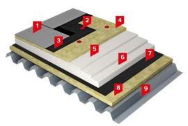 Poilsio, komercinės bei edukacinės paskirties pastatuose naudojama neeksploatuojamo stogo sistema TN ROOF BRM STEEL COMBI EPS 02.