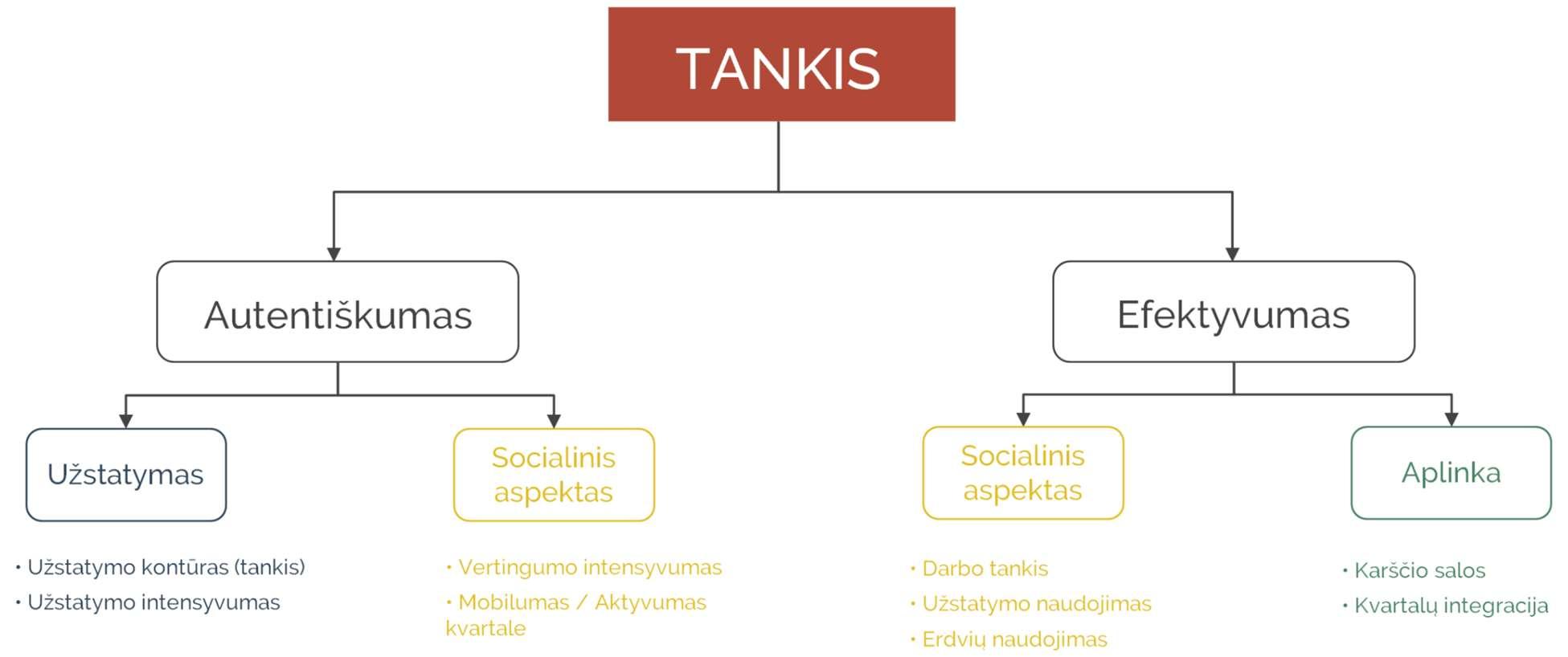 susiklosčiusius Senamiesčio struktūrinių dalių urbanistinio audinio skirtumus, nagrinėjamas kvartalų tankis ir jo kaitos mastas. Analizė atliekama miesto istorinės dalies tankį vertinant autentiškumo ir efektyvumo aspektais.