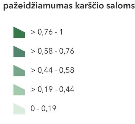 Didesnėmis vertėmis vertinami kvartalai, kuriems būdingas aukštesnis temperatūros vidurkis ir didesnė jautrių klimato sąlygoms amžiaus grupių (0-14 m.; 65+ m.) populiacija bei didesnis kietų dangų santykis.