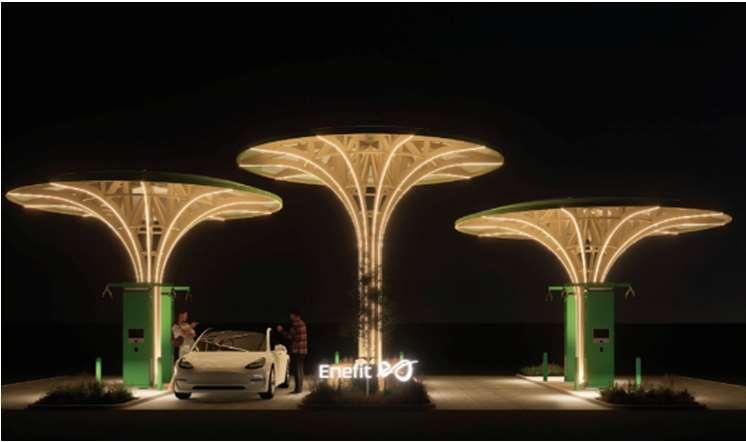 Saulės energijos panaudojimas: Enefit elektromobilių įkrovimo stotelės ir saulės elektrinės.