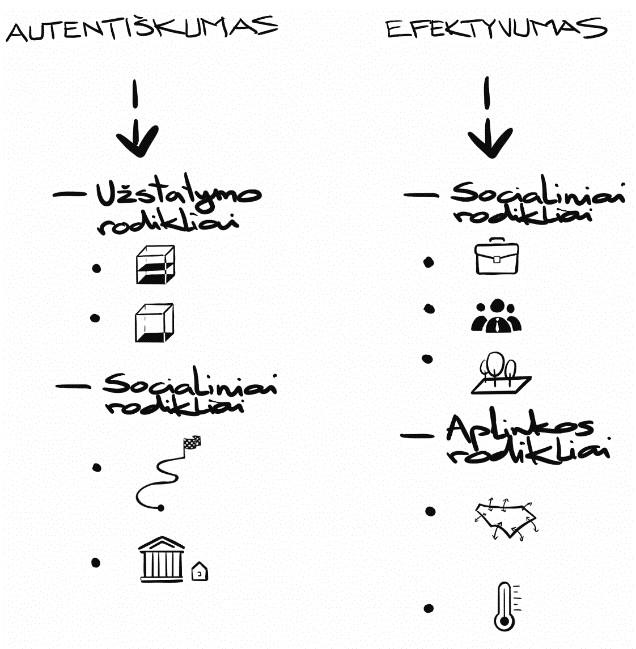 7 pav. Teritorijos autentiškumo ir efektyvumo rodiklių sandara