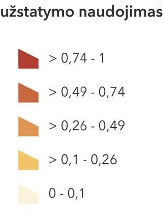 Vertinama kiek kvartalo užstatymo yra efektyviai panaudojama (apgyvendinimui, darbo vietoms) ir kuri užstatymo dalis lieka neefektyvi.