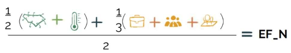 Kiekvienos rodiklių grupės skaitinės vertės normalizuojamos skalėje nuo 0 iki 1. Taip siekiama užtikrinti išvestinių užstatymo, aplinkos ir socialinių rodiklių verčių palyginamumą.