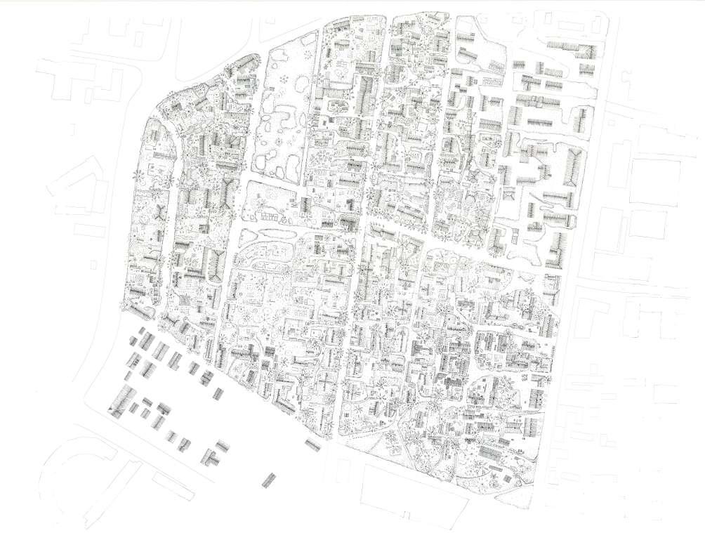 With the design project “Eperimental Preservation” I respond to Vilnius municipality interest in understanding how a city could develop such individualistic forms of urban space while both keeping the current charatcter of place as well as responding to high land price and value. The design project has a scale of a street connecting Krokuvos and S. Fino streets. Currently there is a labyrinth likeunpaved street lingering in a curved line which is hardly defined by any physical objects but rather a feeling. In reality, the complex form of the street is caused by the form of land parcel borders which due to the complex history of the place (please refer to the lit. study) are rather non-uniform (please the land parcel map in the article 4). This design imagines the scenario of needing to densify the neighbourhood and even replace some of the current houses which are not in acceptable condition, therefore the proposition mostly includes new-built structures.