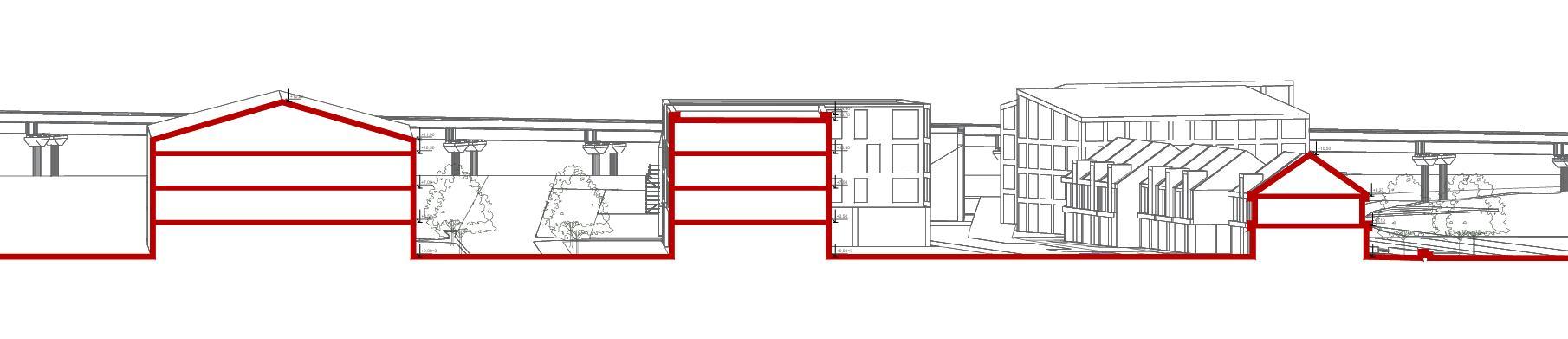 Rytinėje pusėje suplanuota gyvenamoji zona su daugiabučiais namais. Prie pagrindinės gatvės pirmi daugiabučių aukštai numatyti komercinei veiklai, tokiu būdu integruojant prekybos ir paslaugų vietas tiesiai į gyvenamąją erdvę.