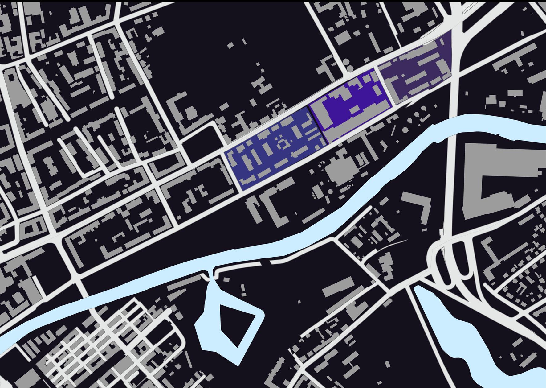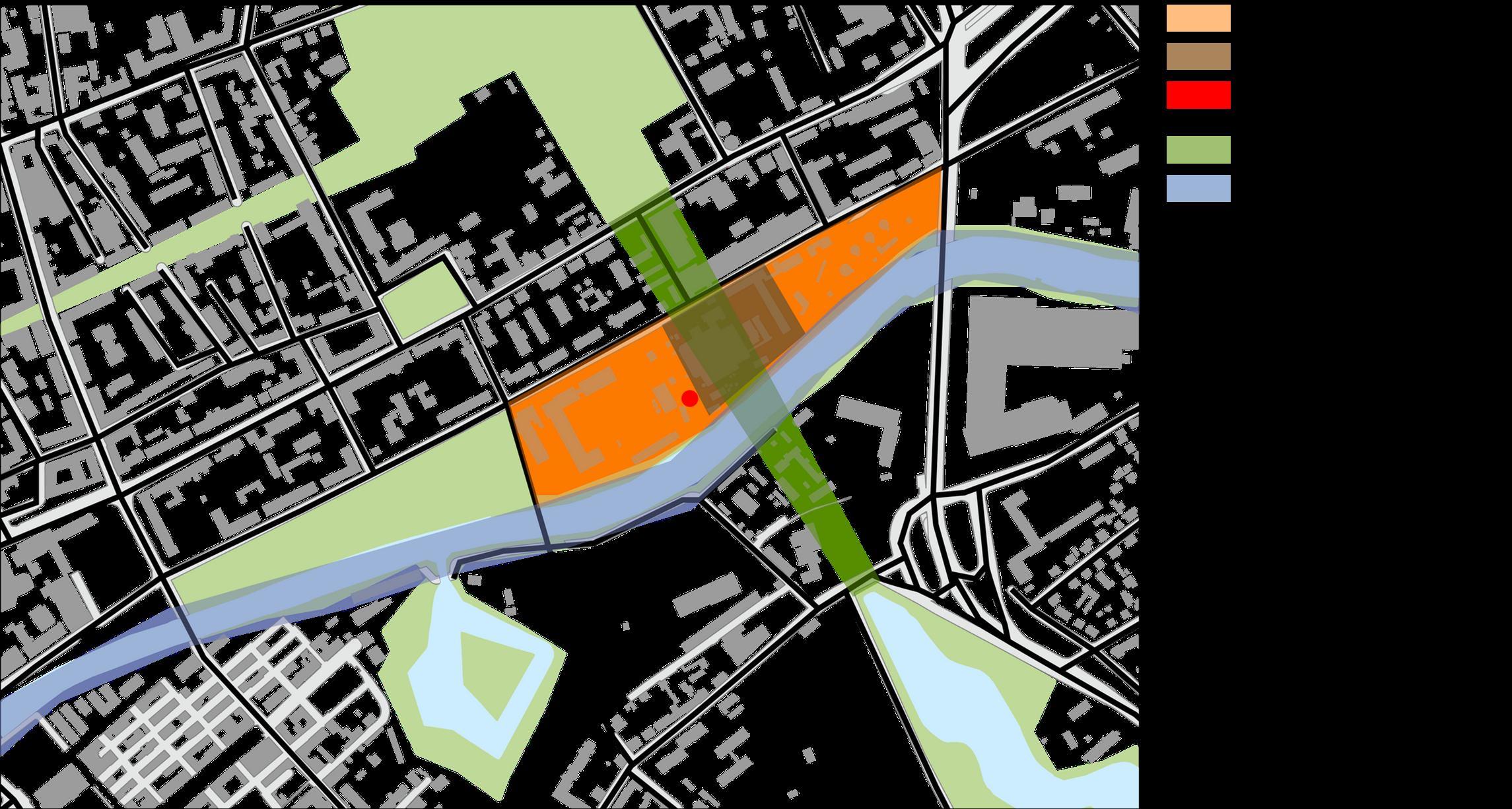Pagrindinė mintis sukurti patrauklias erdvės gyventojams ir miesto lankytojams. Formuoti nepriklausoma rajoną šalia centro teritorijos. Vystyti jau esama teritorija, sukuriant jai naujas funkcijas. Projektuojami nauji keliai ir takai, siekiant sumažinti kvartalą. Numatomi nauji tiltai. Teritorija integruojama į miesto planinę erdvinę sistemą. Įvairių erdvių paskirčių naudojimas leis pritraukti naujus gyventojus. Krantinė turi būti įveiklinta kad atsirastų gyventojų ryšis su vandenių.
