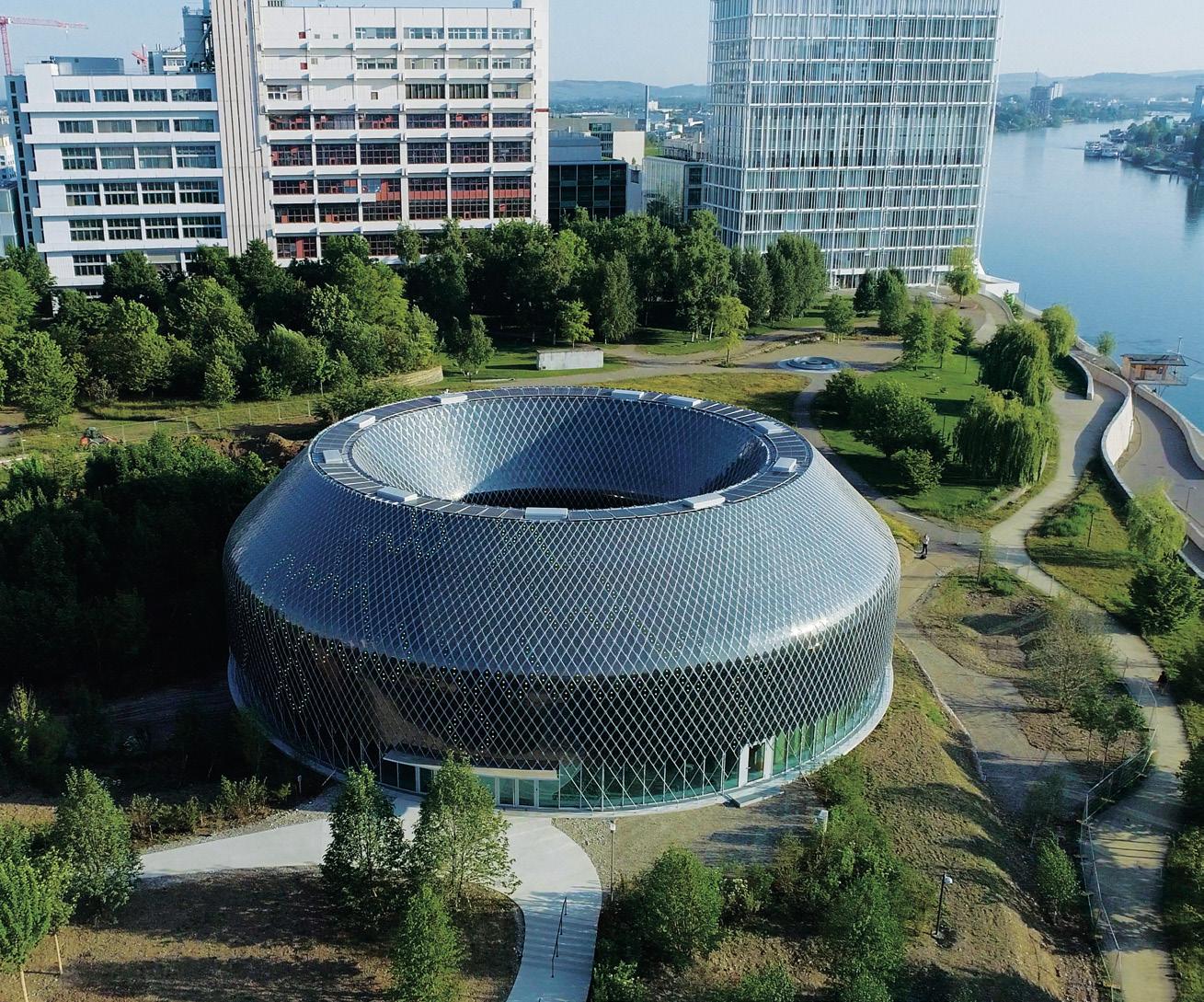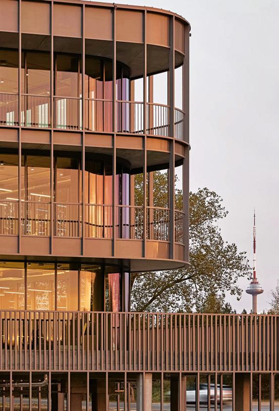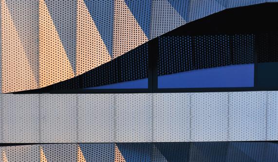 Kalbėdamas apie išskirtinius architektūrinius sprendinius, D. Laucius pirmiausia atkreipia dėmesį į suapvalintus pastatų kampus, lenkto stiklo, skirtingo ritmo aliuminio ir stiklo fasadų plokštumas, iš dalies apžel-