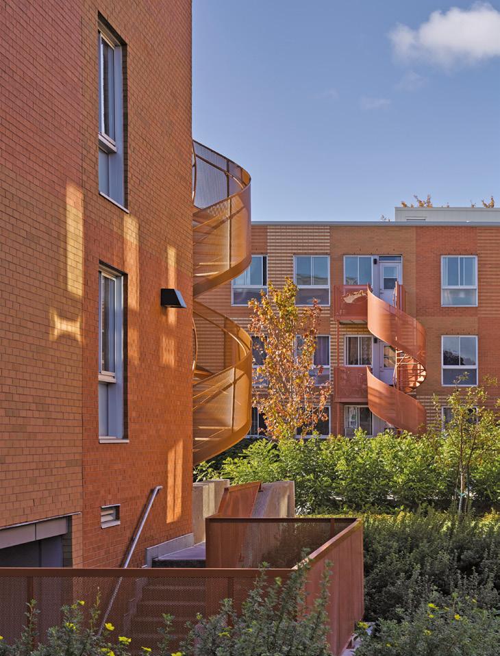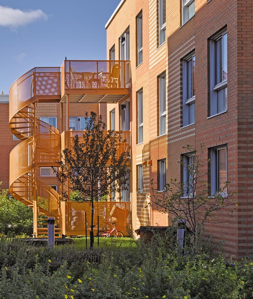 185 butų socialinio būsto komplekso Monrealio Sen Mišelio rajone atnaujinimo projektą rengusią architektūros įmonę „Saia Barbarese Topouzanov“ įkvėpė Nyderlanduose gimusi woonerf koncepcija. Dabar XX a. aštuntojo dešimtmečio pradžioje, brutalizmo laikais, Monrealio architekto Philipo Bobrowo suprojektuotas kompleksas pilnas šviesos ir spalvų. Jis tapo džiugia kraštovaizdžio dalimi, oria ir pagarbia aplinka visiems gyventojams.