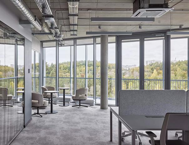 dintą požeminę automobilių stovėjimo aikštelę. Planuojant verslo kompleksą atsižvelgta į esamą sklypo ir teritorijos reljefą. Aukščio skirtumu pasinaudota projektuojant verslo centro „PB Office“ pastatą – automobilių stovėjimo aikštelė suplanuota po žeme. Taip buvo atskirti srautai, o teritorija aplink administracinį pastatą palikta tik pėstiesiems – apželdintos jos prieigos, įrengta žaliųjų salelių. „Teritorijų planavimo ypatumai, ribotas pastatų aukštingumas ir aukštis. Inžinerinių komunikacijų ir sistemų prijungimas“, – vardija iššūkius D. Laucius ir priduria: labiausiai džiugino geri orai ir partnerių kompetencija.