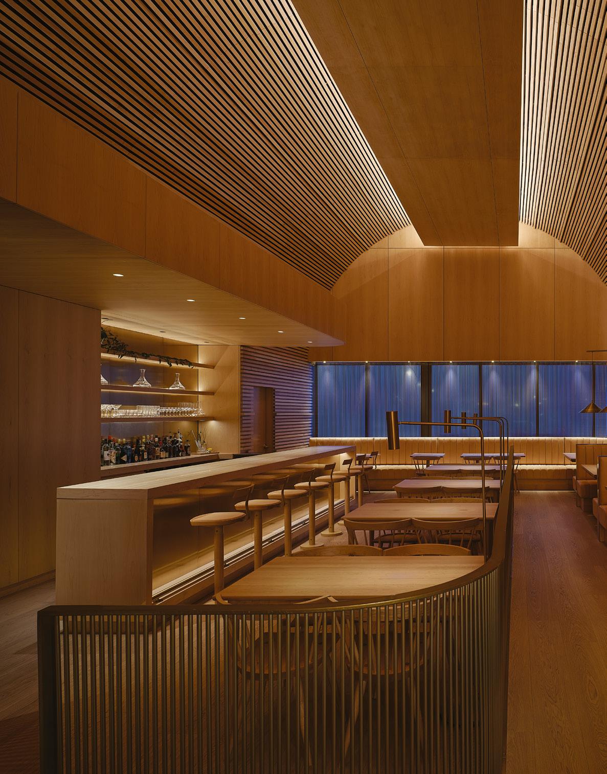 Vakarinėje Toronto dalyje esantis jūros gėrybių restoranas „Prime Seafood Palace“, arba PSP, –šiuolaikiška architektūros ir gastronomijos jungtis, įkūnijanti tylų rafinuotumą miesto šurmulyje. Architektai čia siekė sukurti šviesos pripildytą „medžio katedrą“, natūraliai įsiliejančią į miesto urbanistinį audinį. Pastato dizainas grįstas šviesos ir natūralių medžiagų žaismu: čia dominuoja baltasis klevas, žalvaris ir švelni natūrali šviesa, krintanti pro ilgas, per visą restoraną išdėstytas, šviesos angas. Įspūdingas dviejų aukštų medinis skliautas sukuria monumentalumo jausmą ir tuo pat metu išlaiko šilumą bei intymumą. Vertikalūs žalvariniai ekranai subtiliai atriboja restoraną nuo gatvės. Pagrindinis įėjimas, paslėptas už ramaus vidinio kiemo, kviečia atsitraukti nuo miesto triukšmo. Ąžuolinės grindys pereina į švelniai kylantį rampos formos taką, vedantį į atviro plano virtuvę su medžio anglių židiniu – čia lankytojai gali stebėti meistrišką virtuvės komandos darbą. Visas interjeras alsuoja medžiagiškumu, ilgaamžiškumu ir autentiškumu. Ergonomiški baldai sukurti bendradarbiaujant su „Coolican & Company“: specialiai šiai vietai sumodeliuoti stalai su paslėptais stalčiais „Perceval“ steiko peiliams ir unikali „Edwin Chair“ klevo kėdės versija su žalvario akcentais. WC zona – dviejų aukštų natūralia šviesa užlieta erdvė su „Bianco Carrara“ bambuko plytelėmis ir betono praustuvas, vaizduojantis Erio ežero hidrografinį žemėlapį –subtili aliuzija į restorano šefui Matty Mathesonui brangią vietovę. Galinėje pastato dalyje interjeras keičiasi: čia vyrauja balintos pušies mediena, yra malkinė krosnelė ir tvyro vasarnamio Ontarijo kaime atmosfera. Trejos plieno ir stiklo durys veda į kiemą, kuris vasaros vakarais virsta papildoma šilta ir gyvybinga restorano erdve.