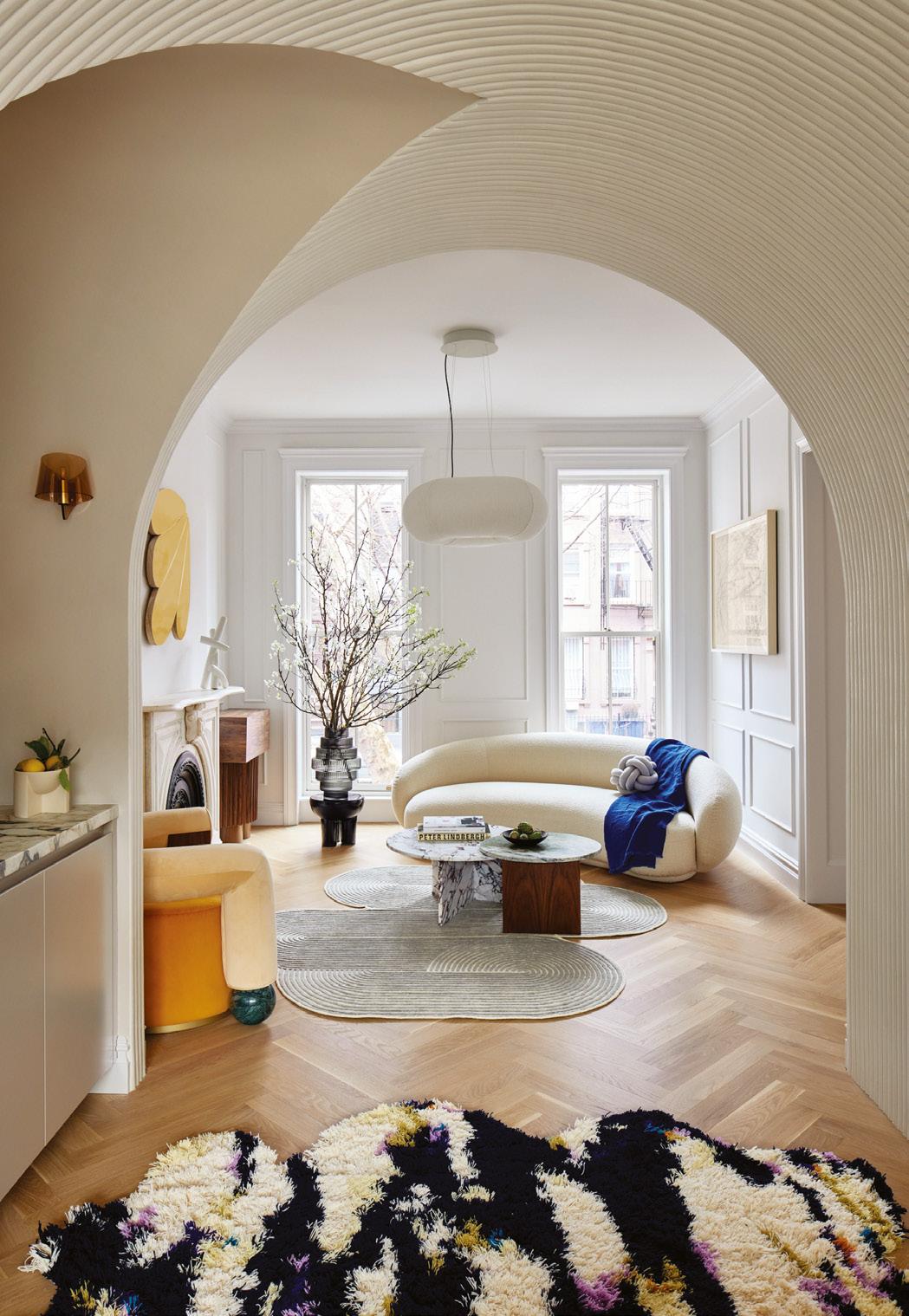viešosios erdvės ir būsto sprendimai benamiams. Pagrindinis įėjimas į namą driekiasi per plytų kiemą, vedantį iki laiptų, kur studijos ir gyvenamosios zonos ribą simboliškai ženklina apvalus plieno turėklas. Kiekviena interjero detalė name kruopščiai apgalvota. Antrąjį aukštą gaubia balinto ąžuolo plokštės, čia organiškai susilieja virtuvė, valgomasis ir svetainė. Per du namo aukštus einantis „šviesos šulinys“ užtikrina natūralios