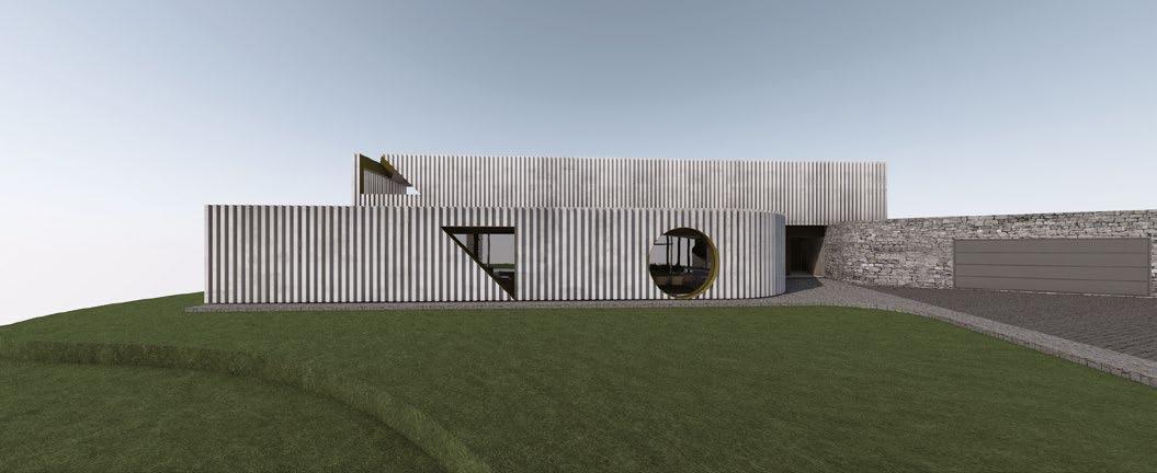 terasa apgaubtos iškreiptomis spektro aliuminio kompozito plokštės juostomis, kurios keičia spalvas žiūrint iš skirtingų kampų. Vaivorykštės juostelės susijungia į dvigubo kreivumo paviršius ir vaizduoja paukščio lizdą ant medžio. Toks paviršius nulupamas, kad apsinuogintų ir matytųsi kambariai, ir patrauktas atgal stogo lygy je, kad būtų sukurta apžvalgos aikštelė.