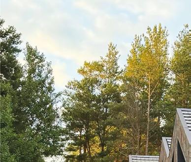 kompozito stogelis, nudažytas oranžine spalva, parinkta iš prekių ženklo „Onninen“ paletės. Ilgalaikį sandarumą, patikimumą ir atsparumą aplinkos poveikiui užtikrina stogo hidroizoliacija dvigubu bituminės dangos sluoksniu.