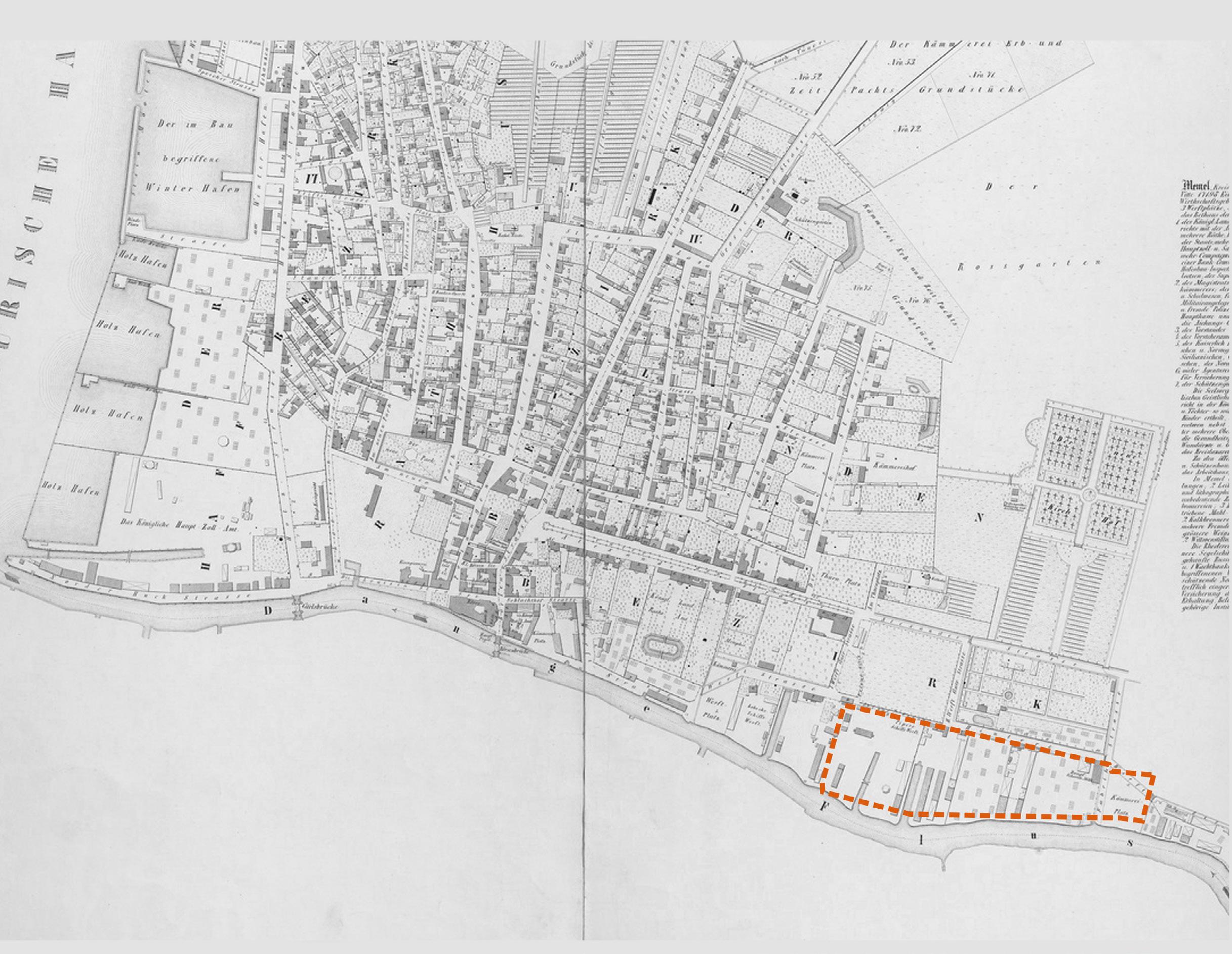 Istoriškai ir miesto planavimo atžvilgiu reikšminga teritorija. 1929 pastatytas kompleksas prie Danės upės. Greta Klaipėdos senamiesčio.