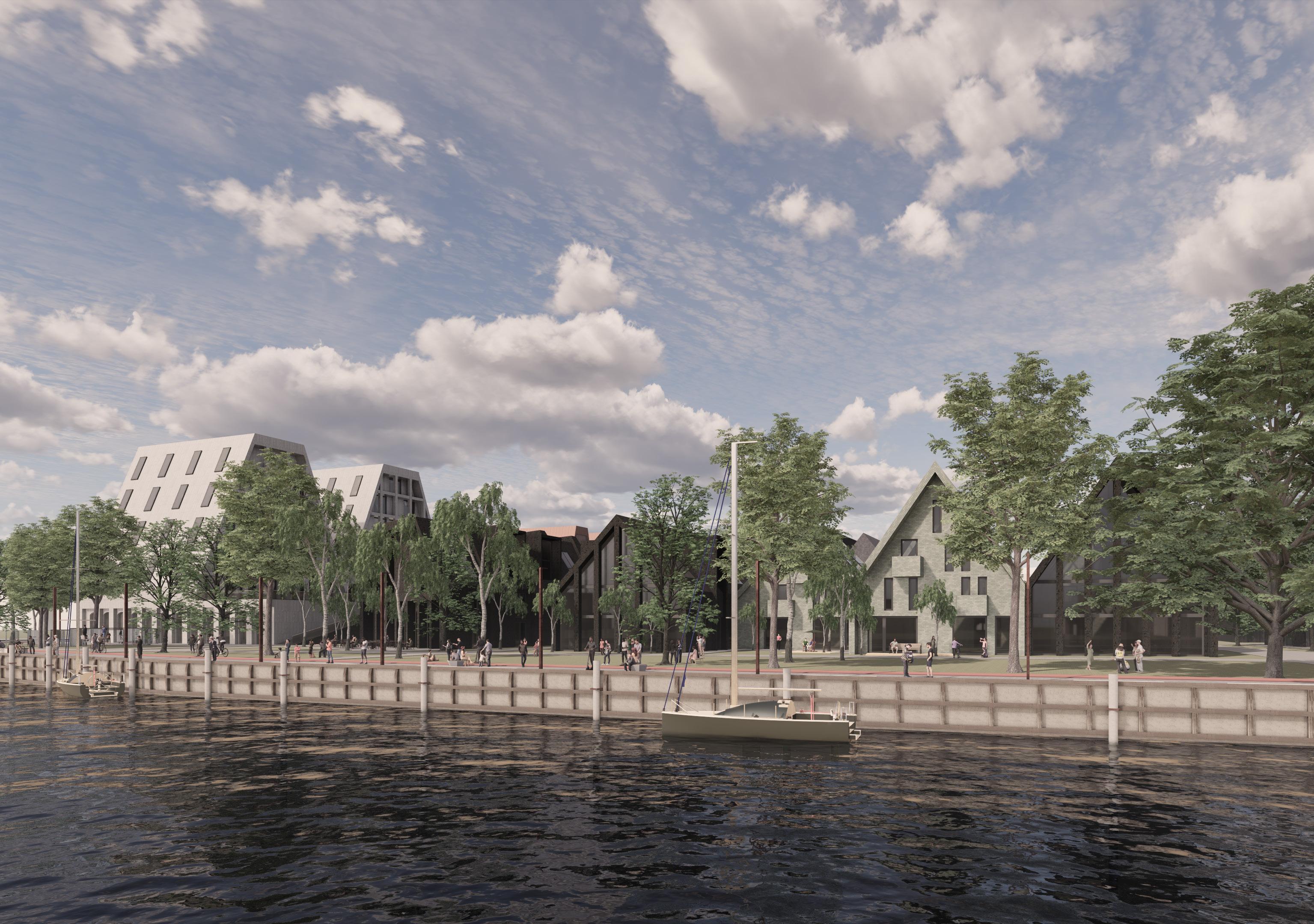 Nors teritorijoje siūlomas gana tankus užstatymas, siūloma kurti želdynų tarpusavio žaliuosius ryšius. Siūloma žalinti krantinė, taio pat siūlomi du želdynai istorinėse vandens kanalų vietose, skaidantys teritoriją į tris zonas.
