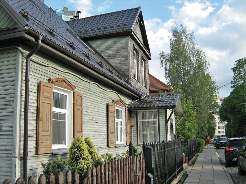 P.Skorinos gatvėje mediniai namai kapitaliai suremontuoti, gražiai sutvarkyti kiemeliai.